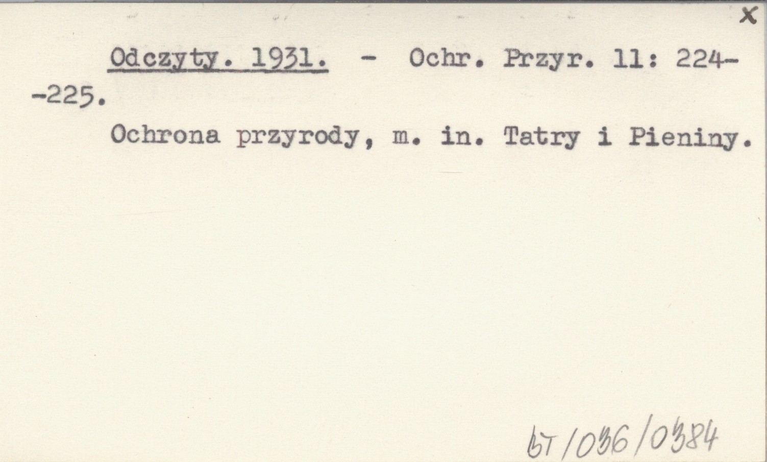 Ochrona Przyrody, 11: 224-225. Ochrona przyrody, m. in. Tatry i Pieniny.