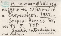 A munkanélküliség nagymervü csökkenése a Szepességen. 1937...