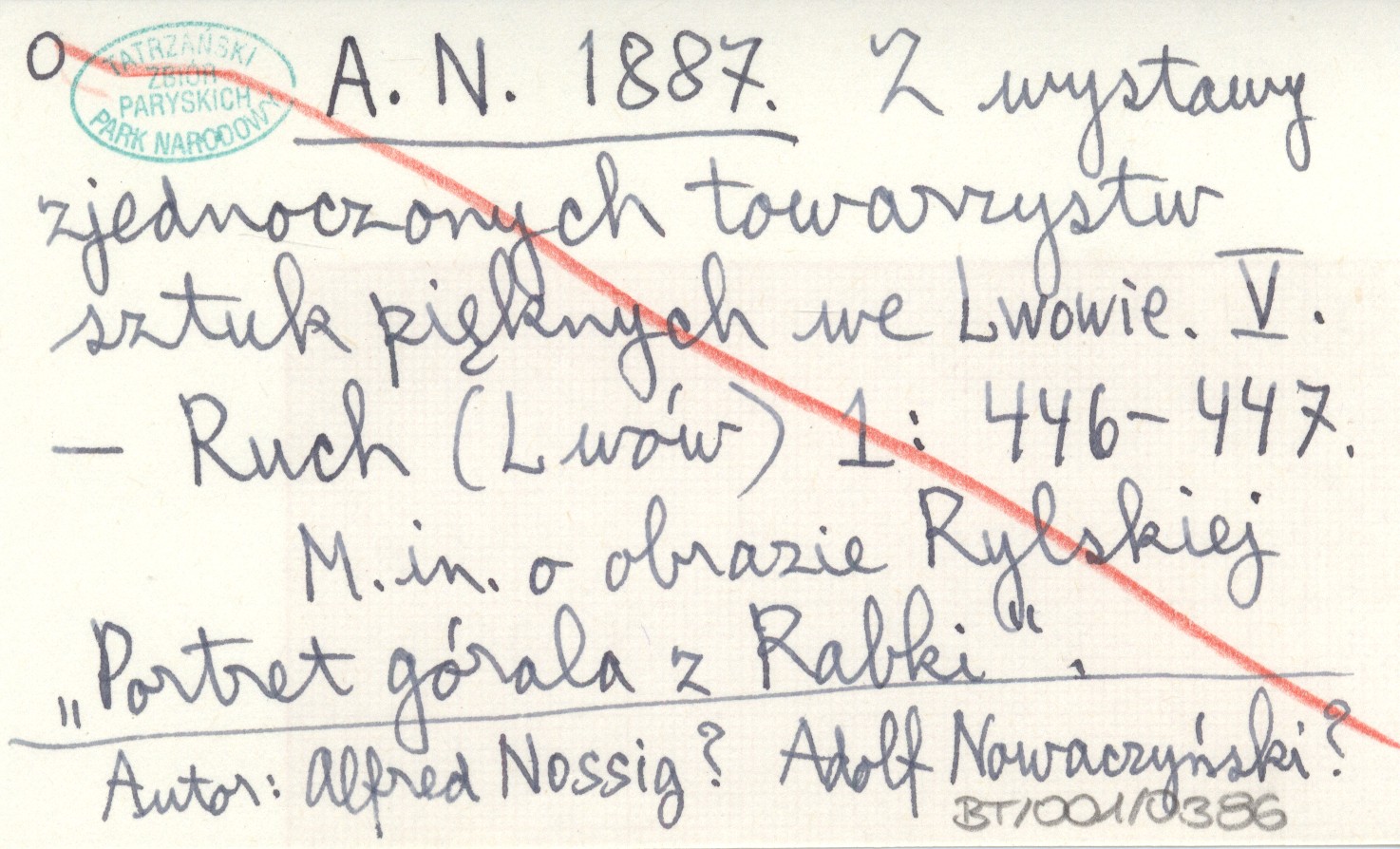 Ruch (Lwów) , 1: 446-447. M. in. o obrazie Rylskiej "Portret górala z Rabki". Autor: Alfred Nossig? Adolf Nowaczyński?