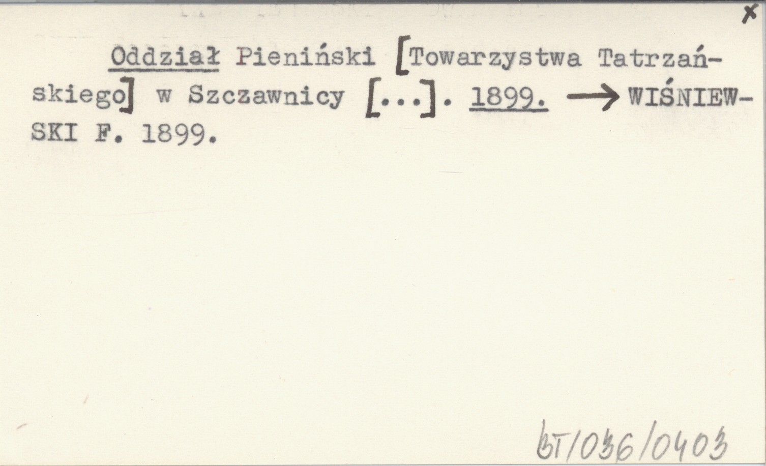 Oddział Pieniński [Towarzystwa Tatrzańskiego] w Szczawnicy [...]. 1899
