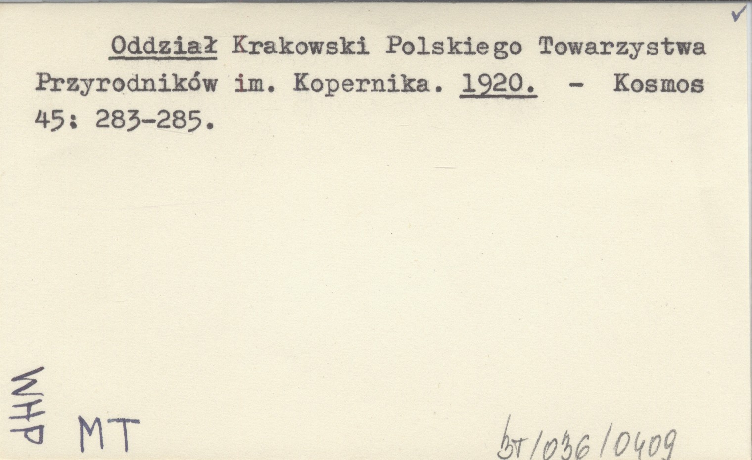 Oddział Krakowski Polskiego Towarzystwa Przyrodników im. Kopernika. 1920