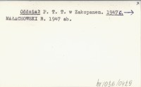 Oddział P. T. T. w Zakopanem. 1947 c