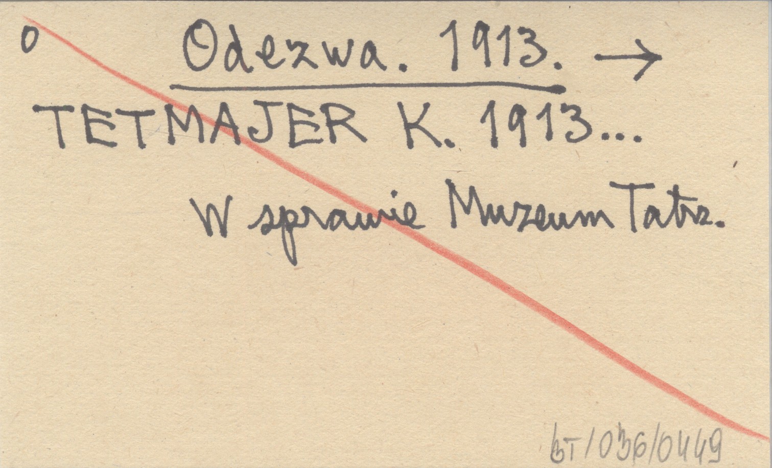 W sprawie Muzeum Tatrzańskiego. TETMAJER K. 1913...