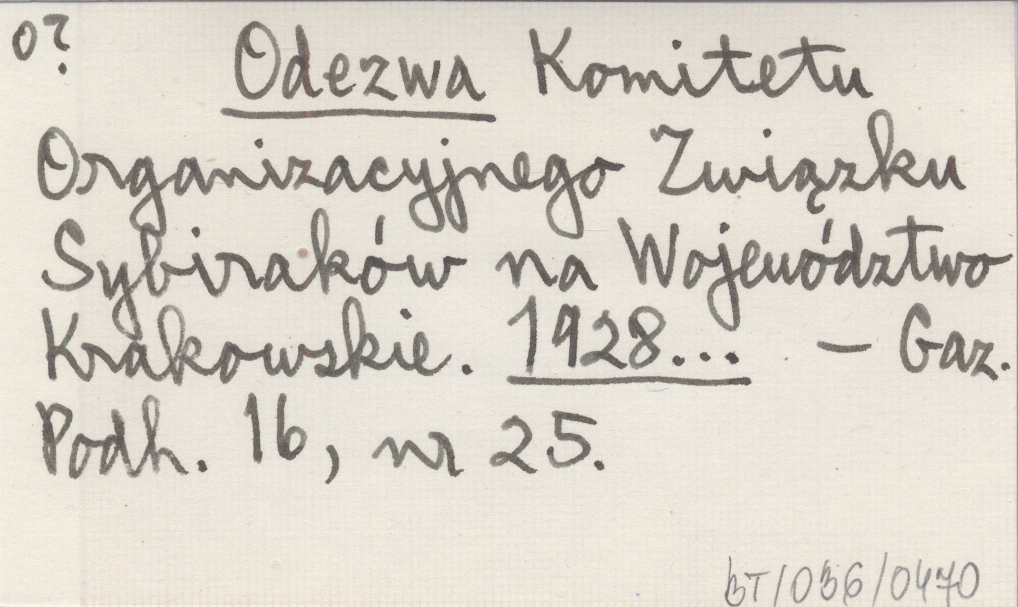 Odezwa Komitetu Organizacyjnego Związku Sybiraków na Województwo Krakowskie. 1928...