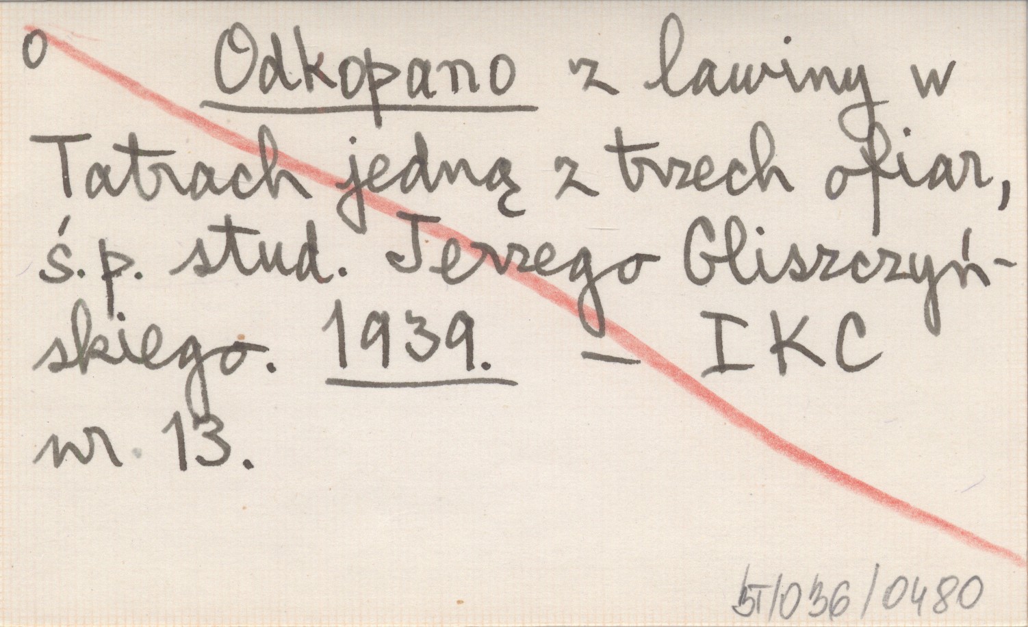 Odkopano z lawiny w Tatrach jedną z trzech ofiar, ś.p. stud. Jerzego Gliszczyńskiego. 1939