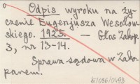 Odpis wyroku na życzenie Eugenjusza Wesołowskiego. 1925