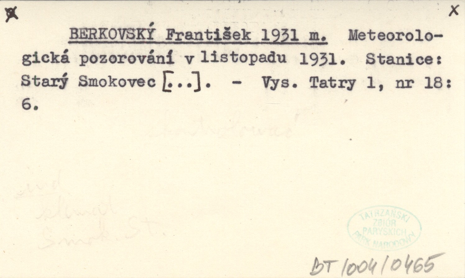 BERKOVSKÝ František 1931 m Meteorologická pozorování v listopadu 1931. Stanice: Starý Smokovec [...].