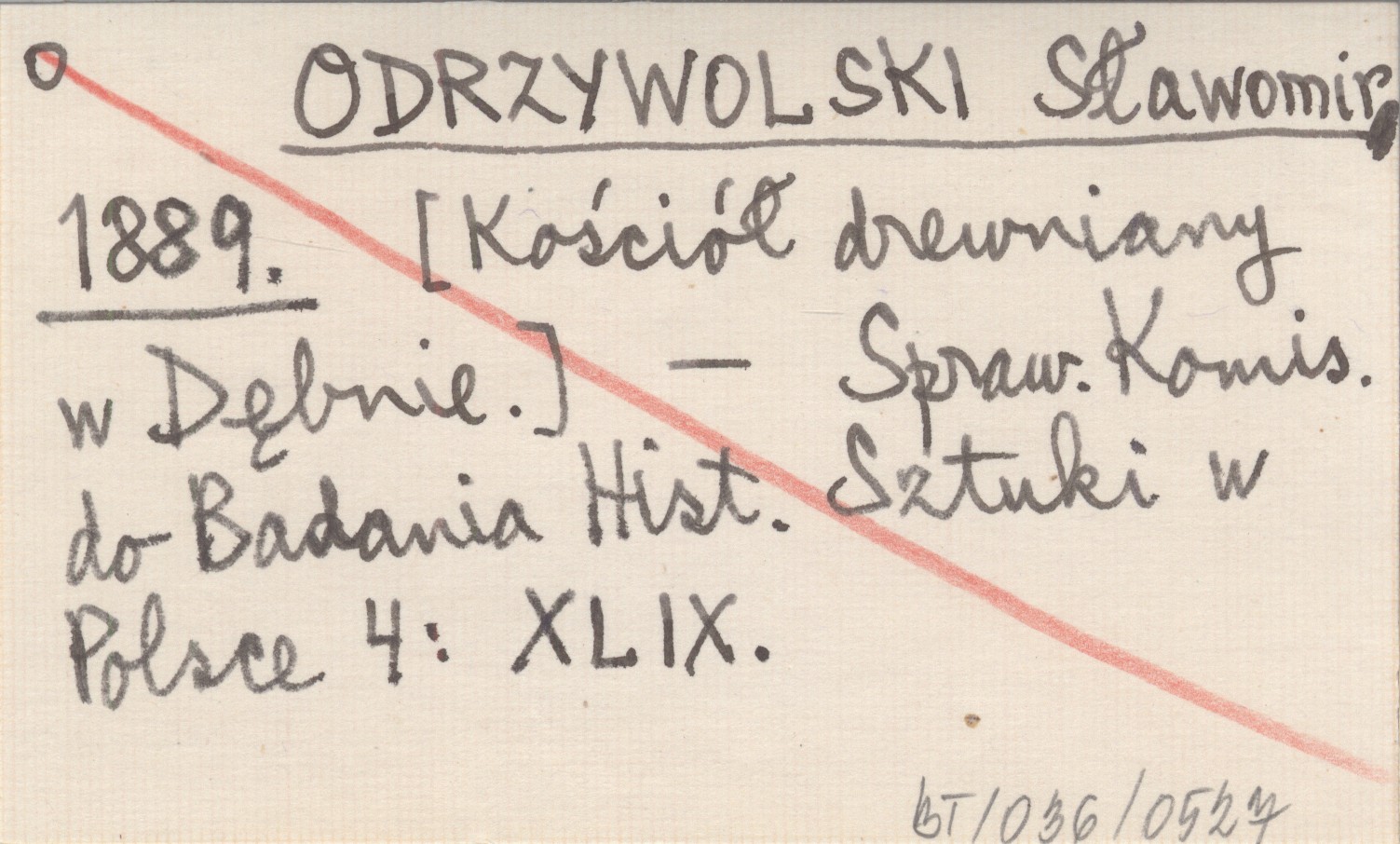 ODRZYWOLSKI Sławomir 1889 [Kościół drewniany w Dębnie].