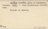 Odvážní montéři na lanovce v Tatrách. 1954