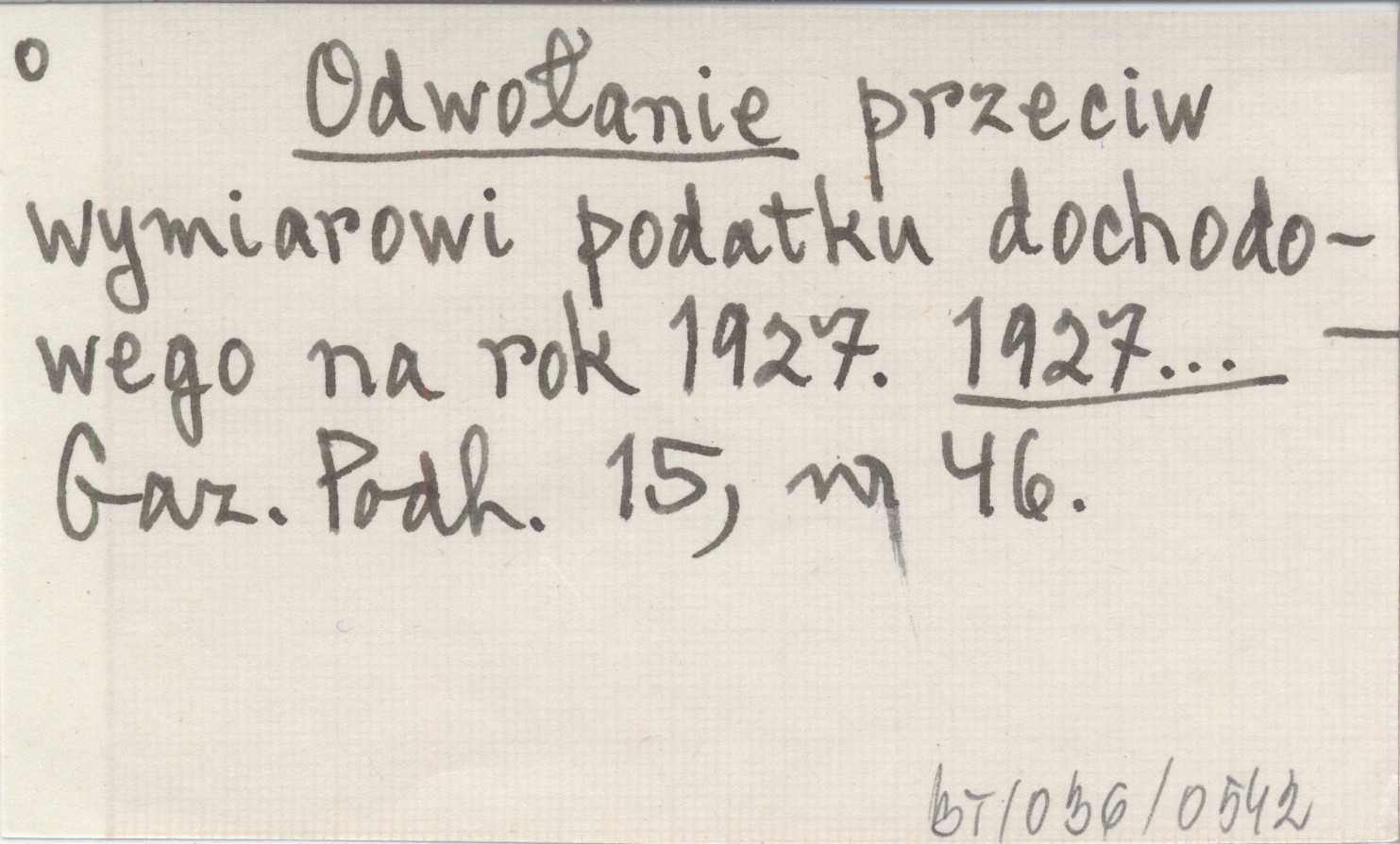 Odwołanie przeciw wymiarowi podatku dochodowego na rok 1927. 1927...