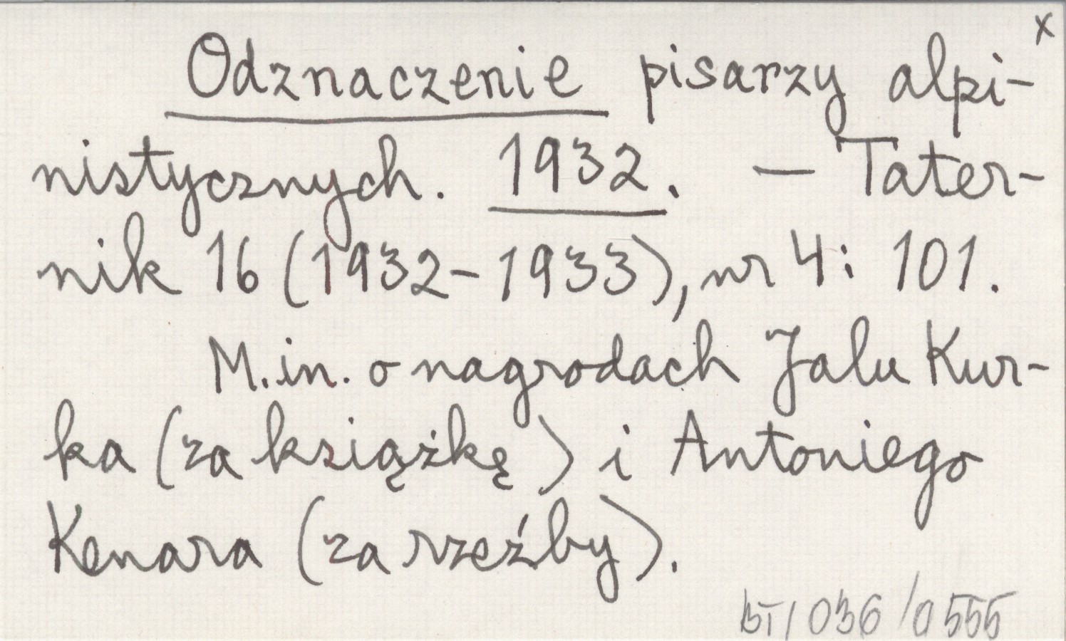 Taternik, 16 (1932-1933), nr 4: 101. M. in. o nagrodach Jalu Kurka (za książkę) i Antoniego Kenara (za rzeźby).