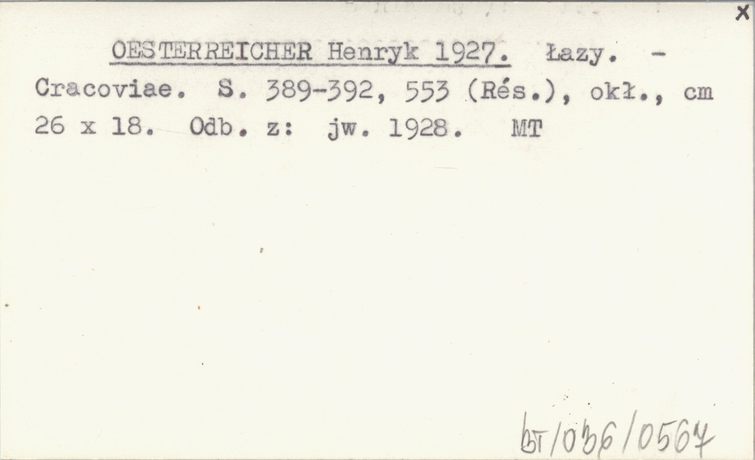 Cracoviae , S. 389-392, 553 (Rés), okł., 26x18 cm. Odb. z: jw. 1928.