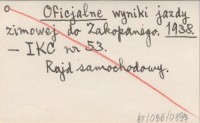 Oficjalne wyniki jazdy zimowej do Zakopanego. 1938