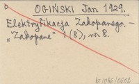 OGIŃSKI Jan 1929 Elektryfikacja Zakopanego.