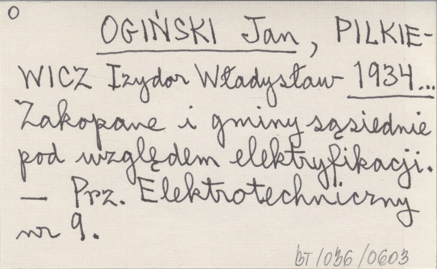 OGIŃSKI Jan PILKIEWICZ, Izydor Władysław. ; 1934... Zakopane i gminy sąsiednie pod względem elektryfikacji.