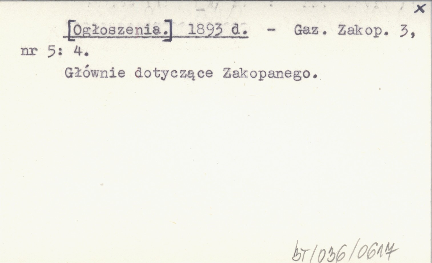 Gazeta Zakopiańska, 3, nr 5: 4. Głównie dotyczące Zakopanego.