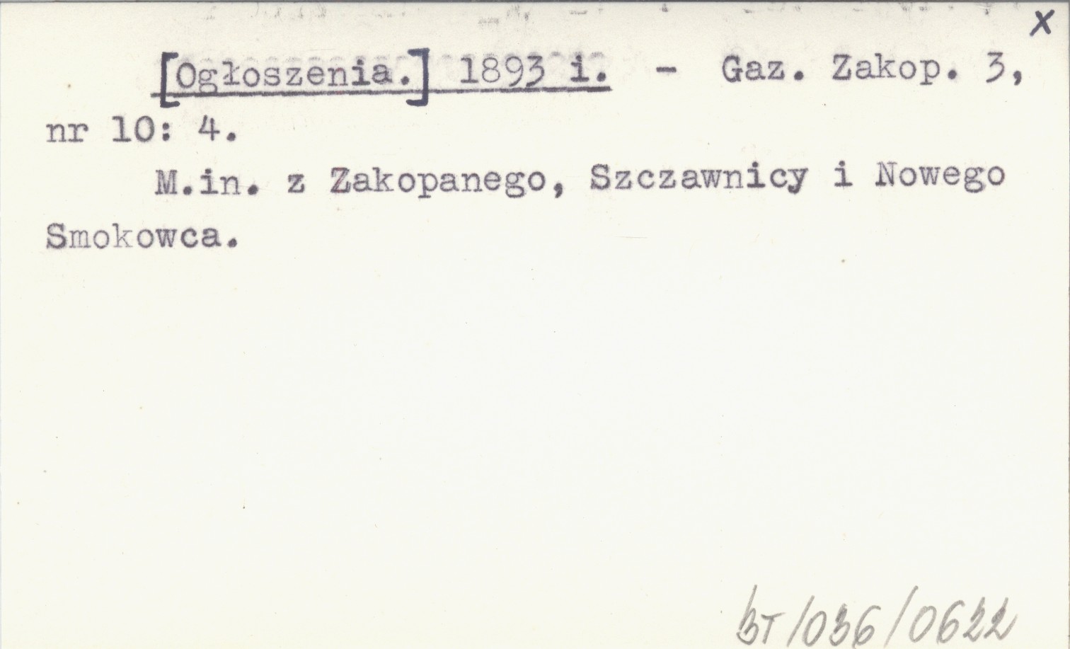 Gazeta Zakopiańska, 3, nr 10: 4. M. in. z Zakopanego, Szczawnicy i Nowego Smokowca.
