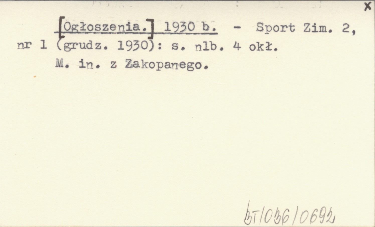 Sport Zimowy, 2, nr 1 (12.1930): [4] (okł). M. in. z Zakopanego.