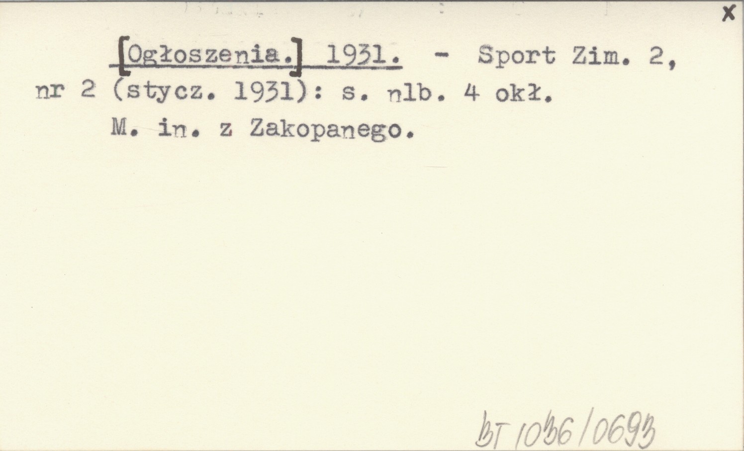 Sport Zimowy, 2, nr 2 (01.1931): [4] (okł.). M. in. z Zakopanego.