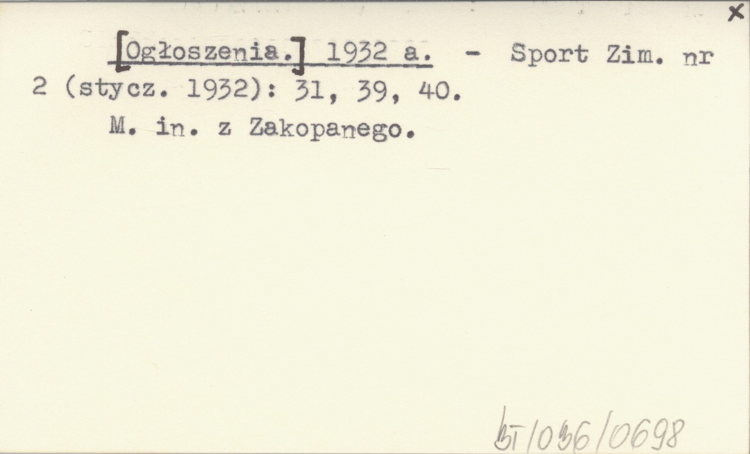 Sport Zimowy, Nr 2 (01.1932): 31, 39, 40. M. in. z Zakopanego.