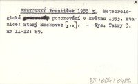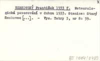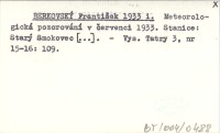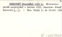 BERKOVSKÝ František 1933 j Meteorologická pozorování v srpnu 1933. Stanice: Starý Smokovec [...].