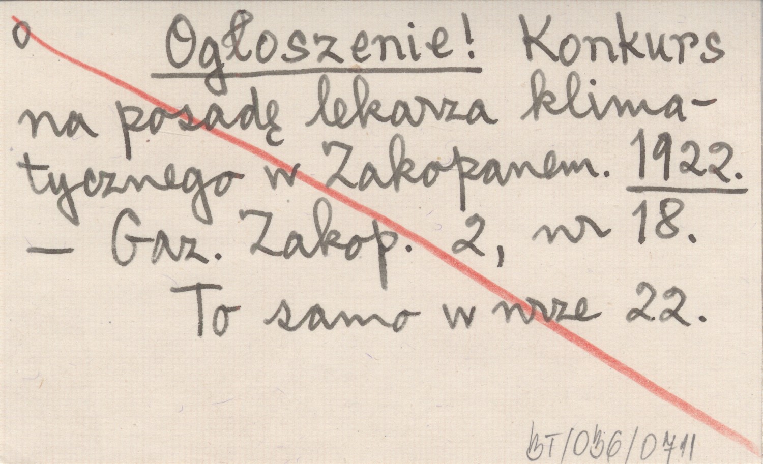 Ogłoszenie! Konkurs na posadę lekarza klimatycznego w Zakopanem. 1922