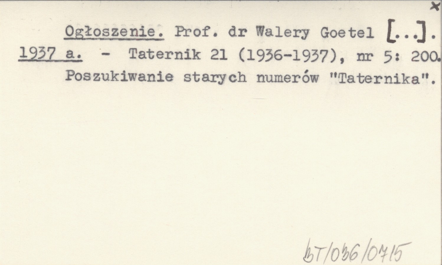 Taternik, 21 (1936-1937), nr 5: 200. Poszukiwanie starych numerów "Taternika".