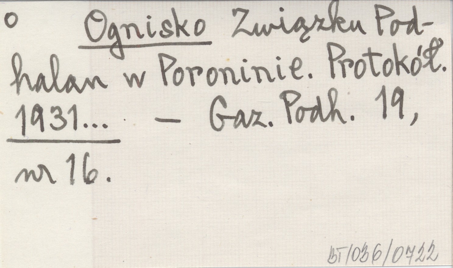 Ognisko Związku Podhalan w Poroninie. Protokół. 1931...