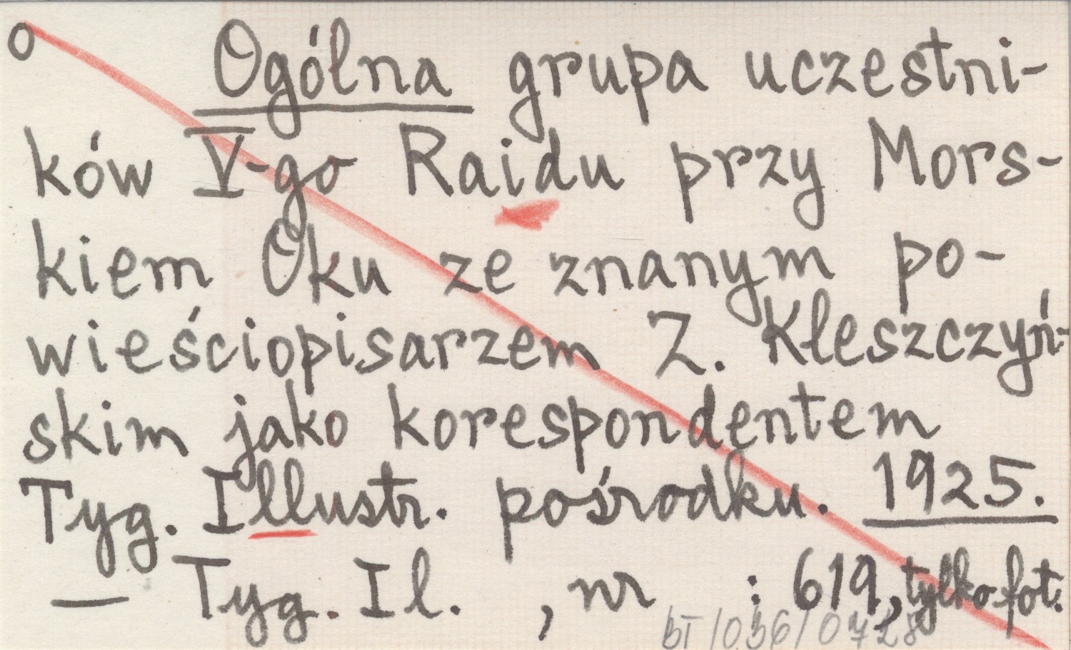 Ogólna grupa uczestników V-go Raidu przy Morskiem Oku ze znanym powieściopisarzem Z. Kleszczyńskim jako korespondentem Tyg. Illustr. pośrodku. 1925