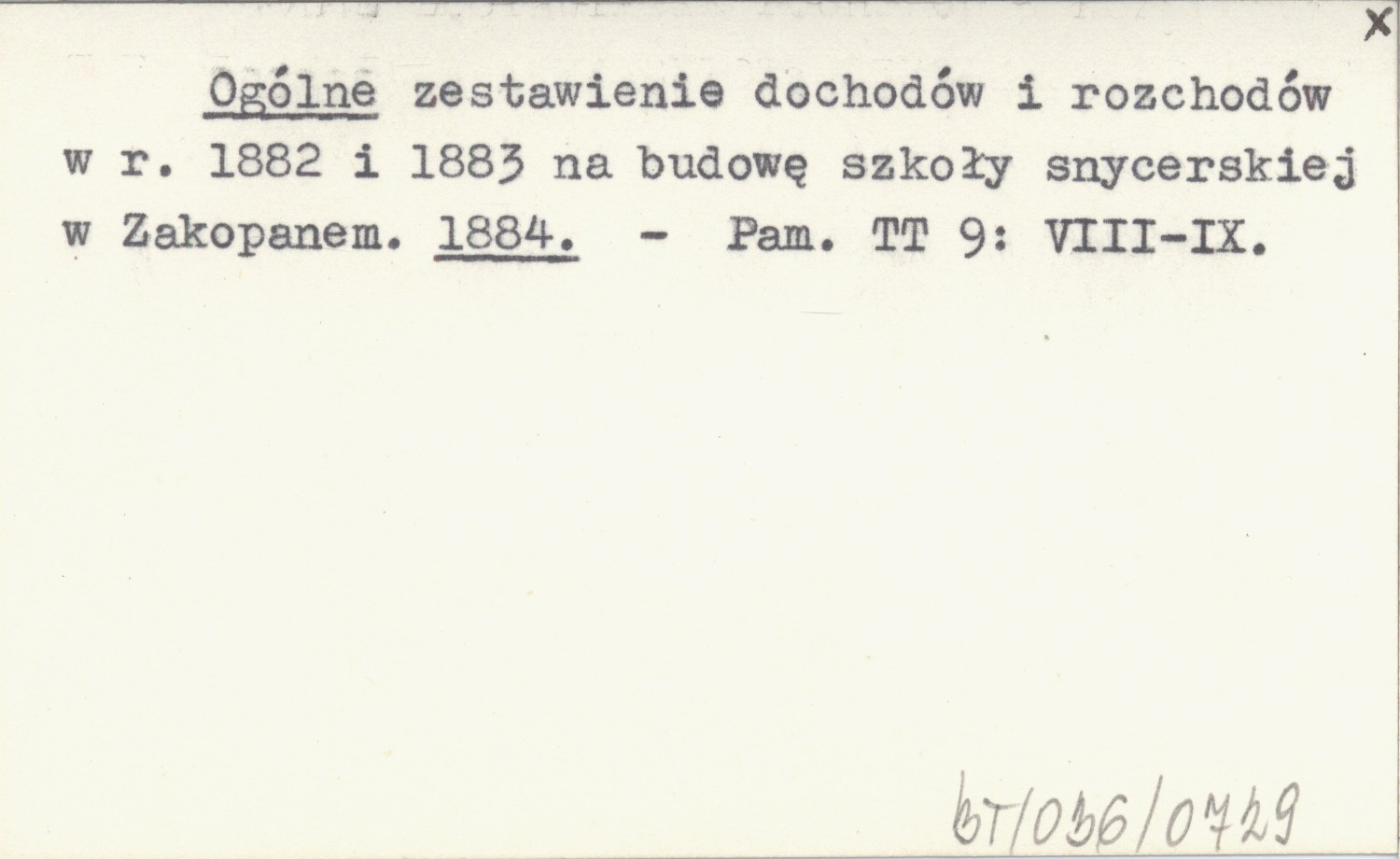Ogólne zestawienie dochodów i rozchodów w r. 1882 i 1883 na budowę szkoły snycerskiej w Zakopanem. 1884