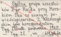 Ogólna grupa uczestników V-go Raidu przy Morskiem Oku ze znanym powieściopisarzem Z. Kleszczyńskim jako korespondentem Tyg. Illustr. pośrodku. 1925