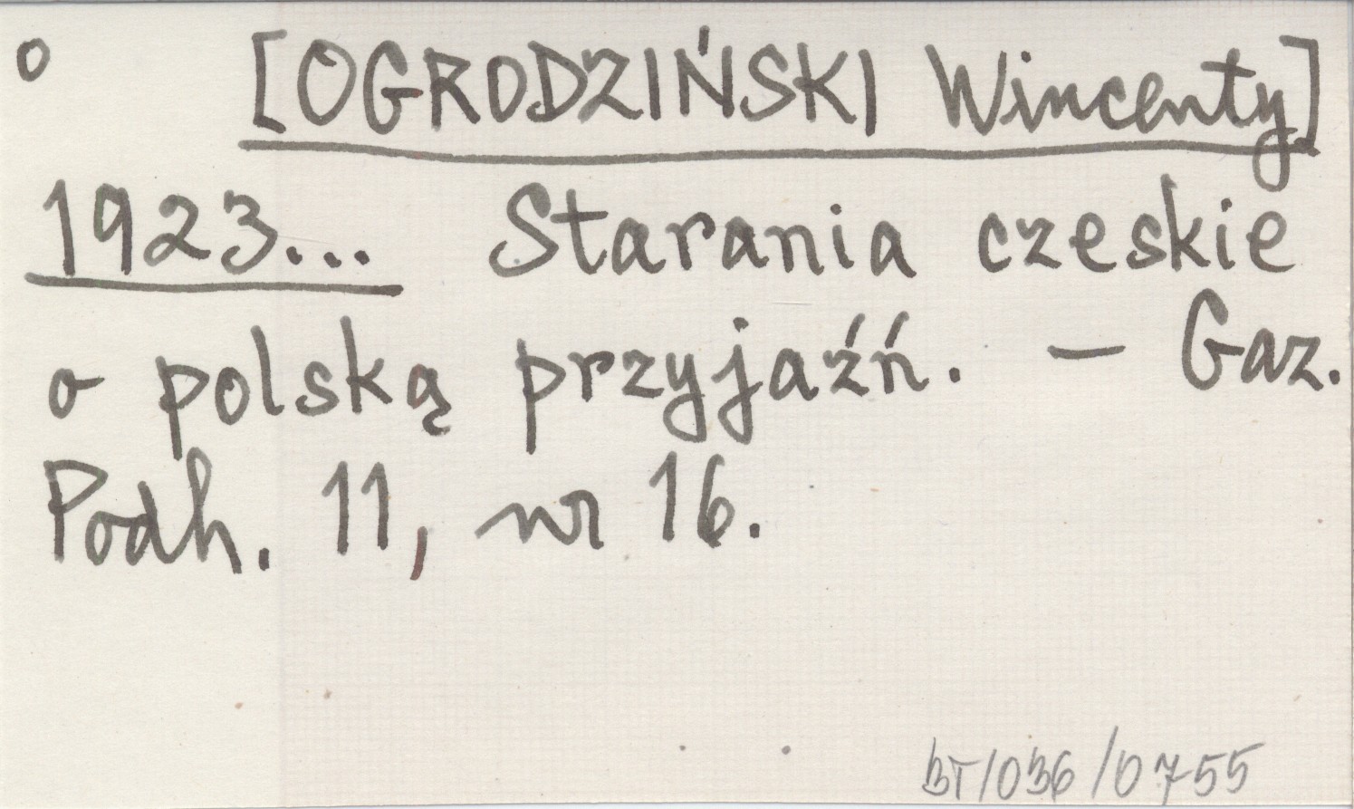 [OGRODZIEŃSKI Wincenty] 1923... Starania czeskie o polską przyjaźń.