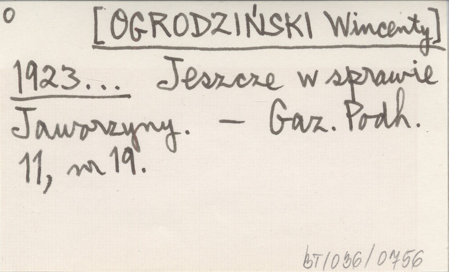 [OGRODZIEŃSKI Wincenty] 1923... Jeszcze w sprawie Jaworzyny.
