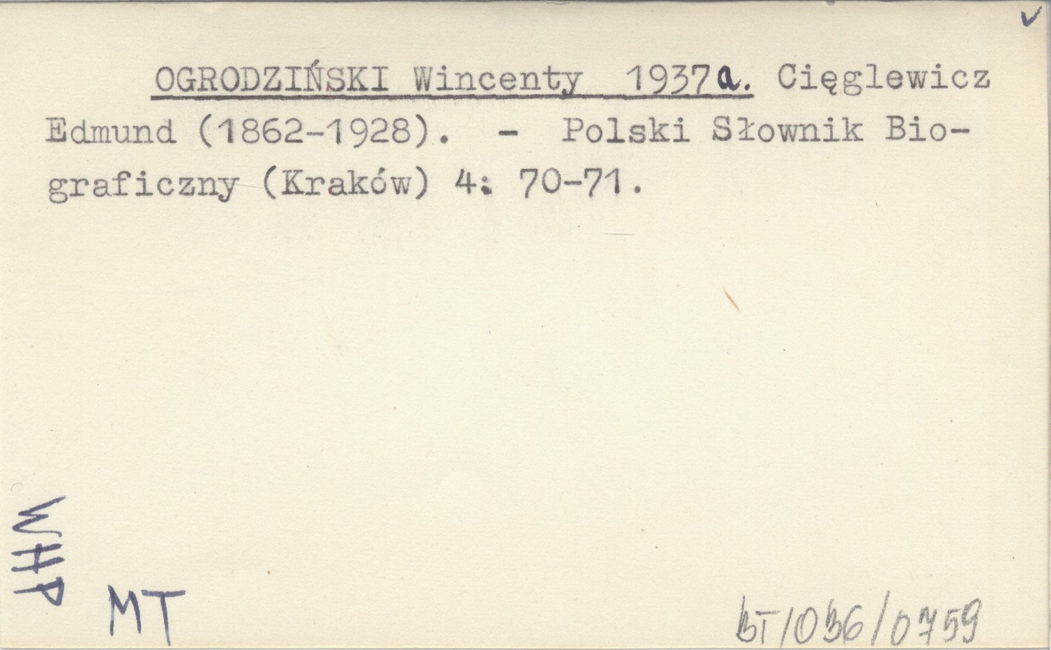 OGRODZIEŃSKI Wincenty 1937 a Cięglewicz Edmund (1862-1928).