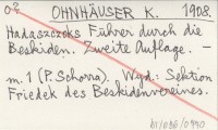 OHNHÄUSER K. 1908 Hadaszczoks Führer durch die Beskiden.