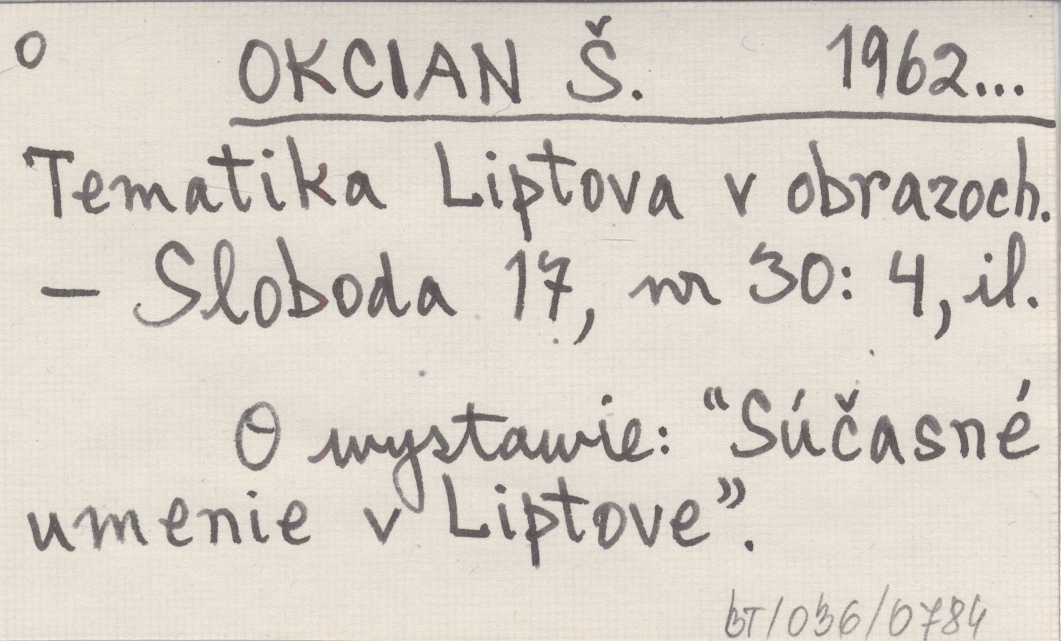 Sloboda, 17, nr 30: 4, il. O wystawie: "Súčasné umenie v Liptove".