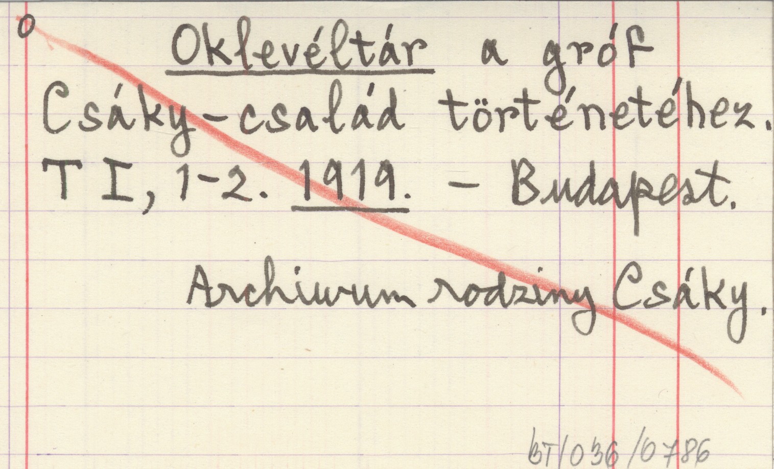 Oklevéltár a grüf Csáky-család történetéhez. T I, 1-2. 1919
