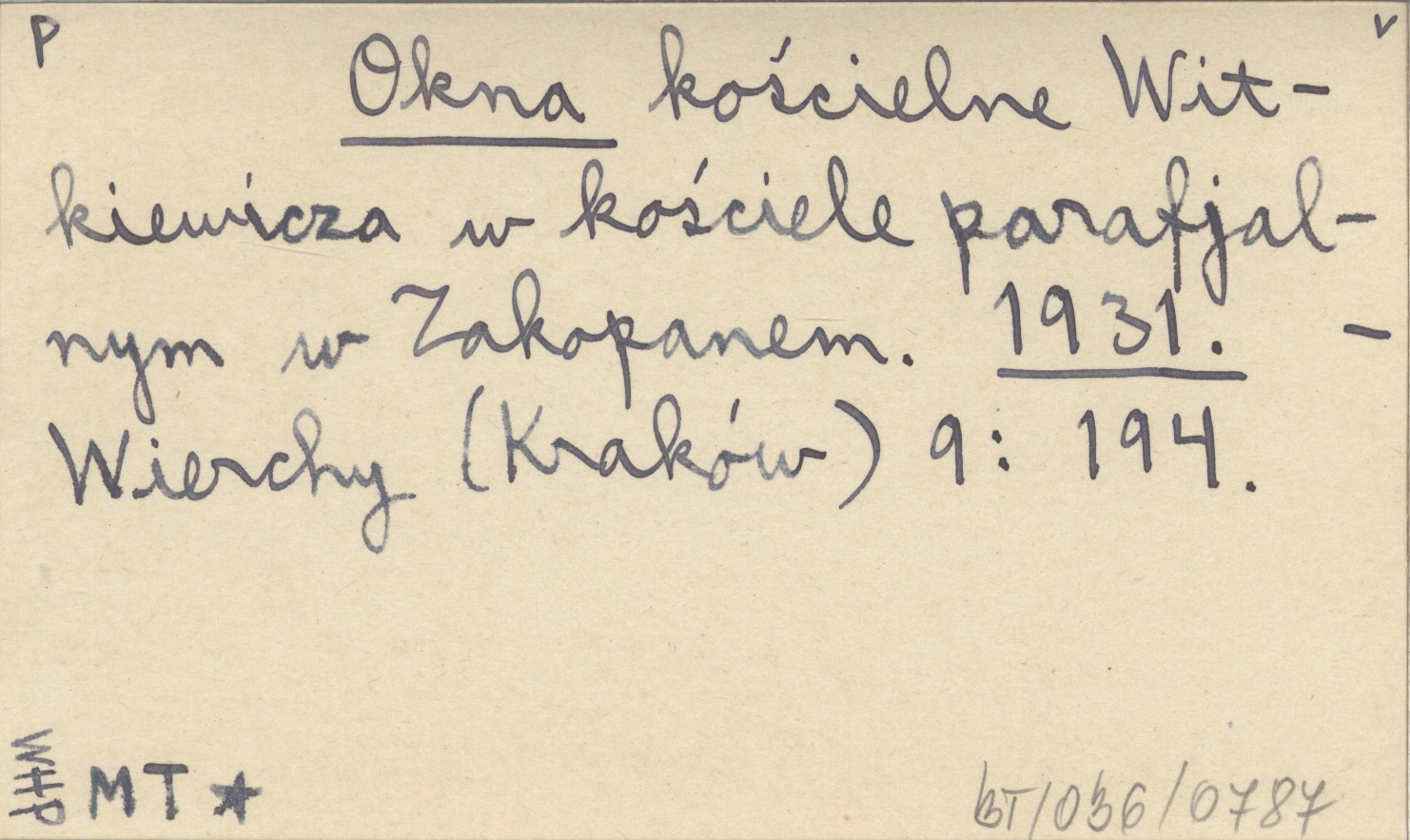 Okna kościelne Witkiewicza w kościele parafjalnym w Zakopanem. 1931