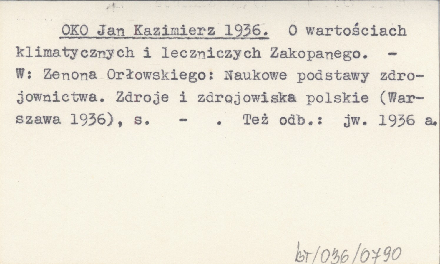 Zenona Orłowskiego: Naukowe Podstawy zdrojownictwa. Zdroje i zdrojowiska polskie (Warszawa 1936). , Też odb.: jw. 1936 a.