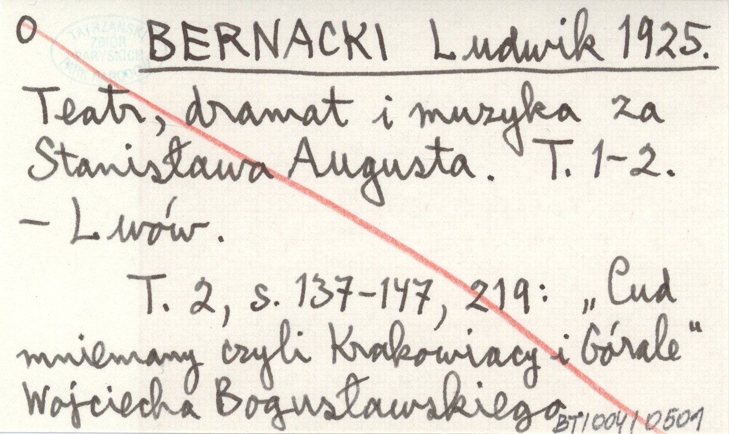Lwów , T. 1-2. T. 2: 137-147, 219: "Cud mniemany czyli Krakowiacy i Górale" Wojciecha Bogusławskiego.