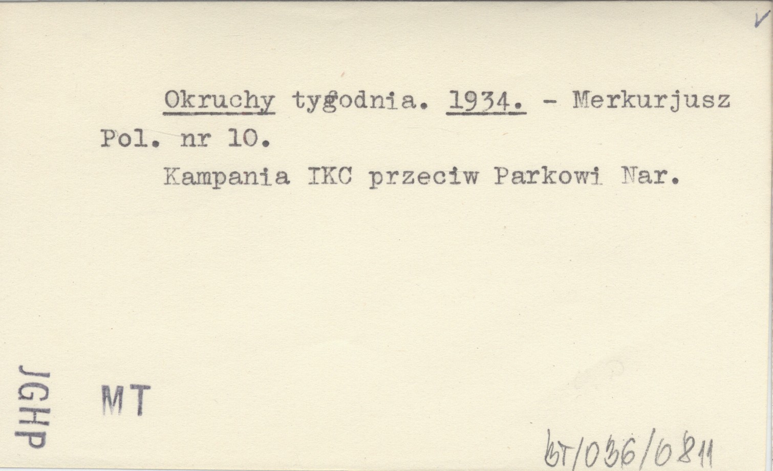 Merkurjusz Polski, Nr 10. Kampania Ilustrowanego Kuryera Codziennego przeciw Parkowi Narodowemu.