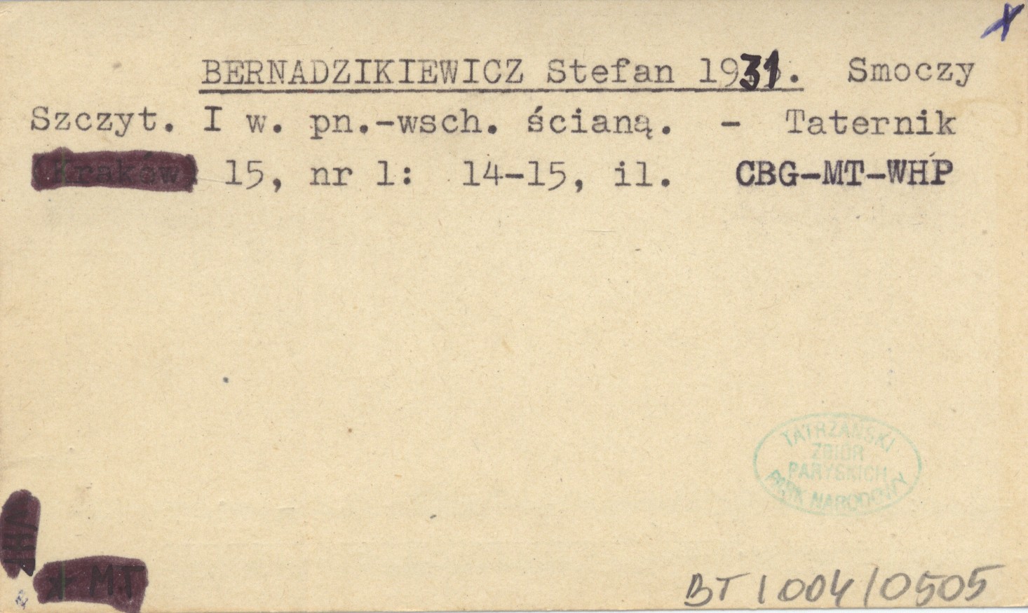 BERNADZIKIEWICZ Stefan 1931 Smoczy Szczyt. I w. pn.-wsch. ścianą.