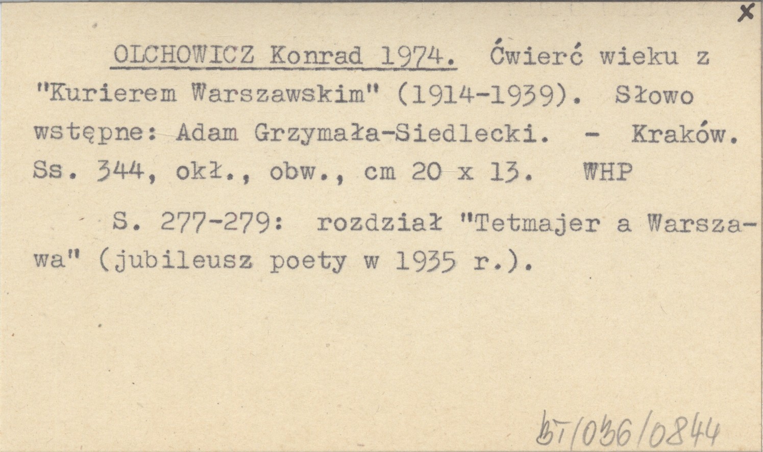 OLCHOWICZ Konrad 1974 Ćwierć wieku z "Kurierem Warszawskim" (1914-1939). Słowo wstępne: Adam Grzymała-Siedlecki.