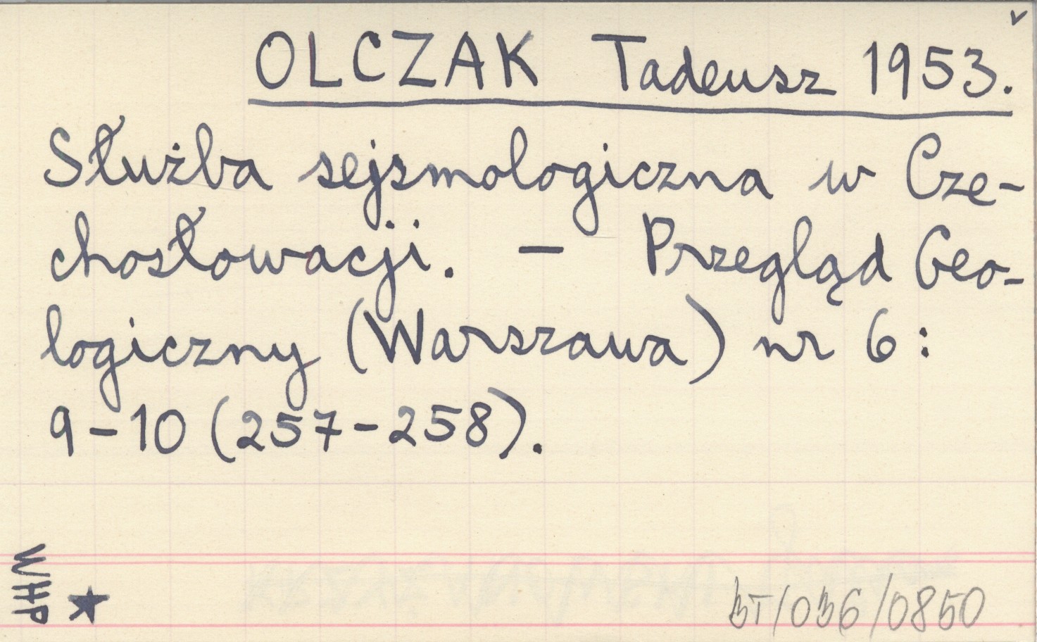 OLCZAK Tadeusz 1953 Służba sejsmologiczna w Czechosłowacji.