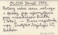 OLCOŃ Daniel 1974 Postawy wobec czasu wolnego i sposoby jego wykorzystania przez mieszkańców Białku [Tatrz.].