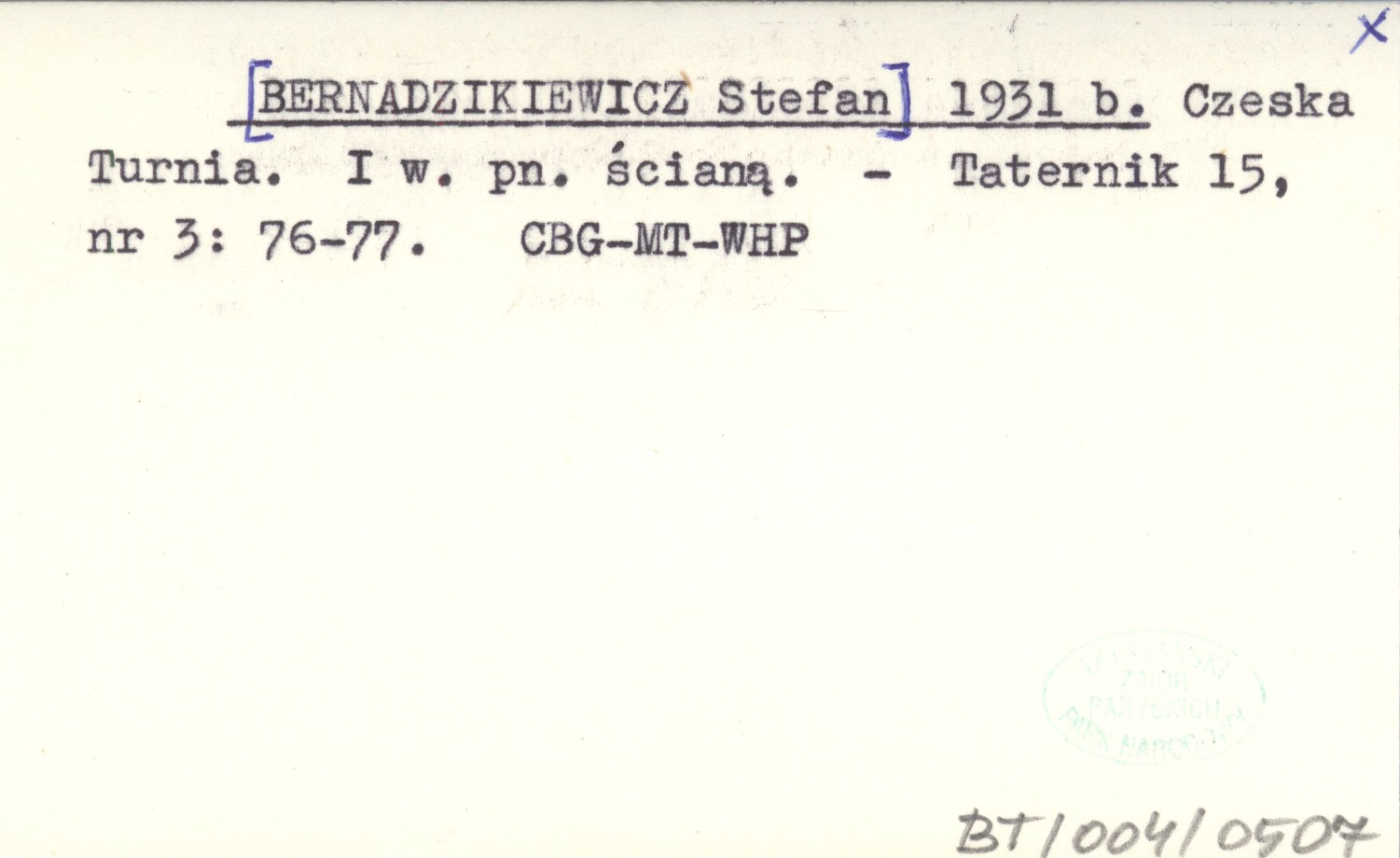 [BERNADZIKIEWICZ Stefan] 1931 b Czeska Turnia. I w. pn. ścianą.