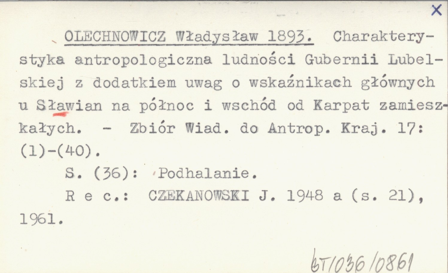 Zbiór Wiadomości do Antropologii Krajowej, 17: (1)-(40). S. (36): Podhalanie. REC: CZEKANOWSKI J. 1948 a (s. 21), 1961.