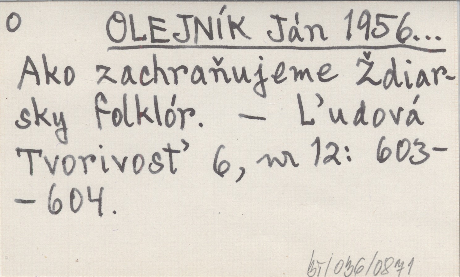 OLEJNÍK Ján 1956... Ako zachraòujeme źdiarsky folklór.
