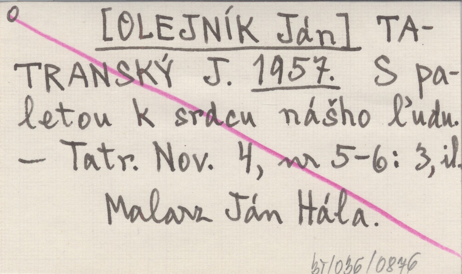 TATRANSKÝ J. [OLEJNÍK Ján] 1957 S paletou k srdcu nášho ľudu.