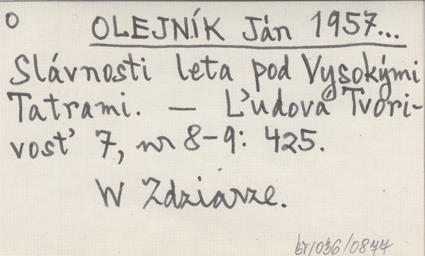 OLEJNÍK Ján 1957... Slávnosti leta pod Vysokými Tatrami.